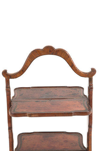 Opening etagere in veneered wood and leather on the shelves. France. 19th century. Defects and missing parts. 100x40x33 cm approx. Etagere apribile in legno lastronato e cuoio sui piani. Francia. XIX secolo. Difetti e mancanze. 100x40x33 cm ca.