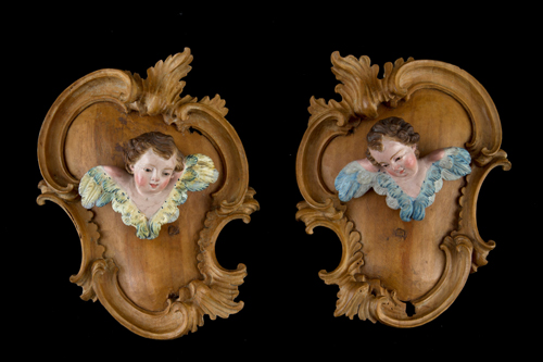 Pair of wooden cherubs