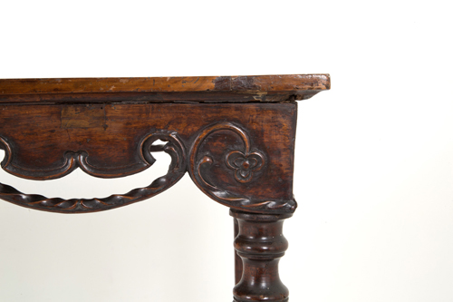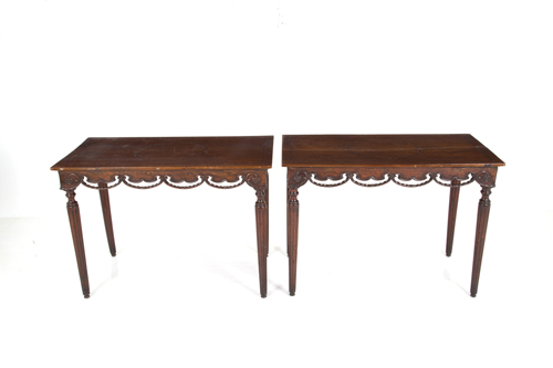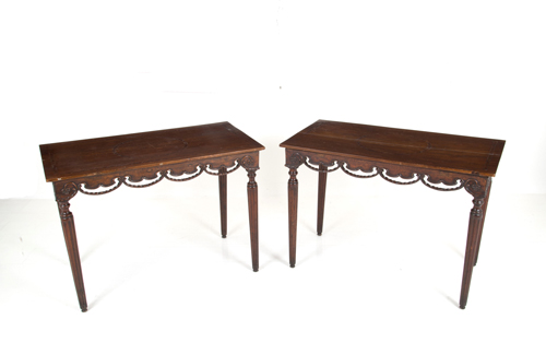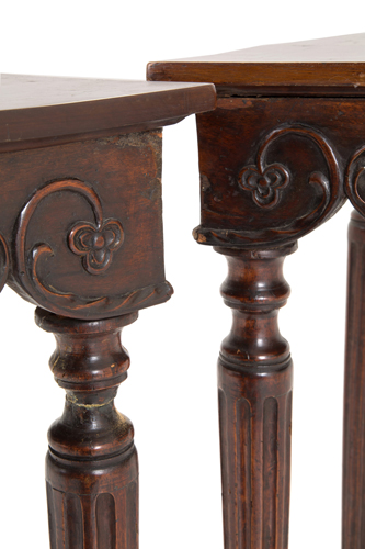 Pair of finely carved walnut center tables. Ferrara. 19th century. 74x107x59 cm approx. Coppia di tavoli da centro in legno di noce finemente intagliato. Ferrara. XIX secolo. 74x107x59 cm ca.