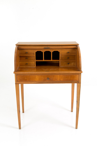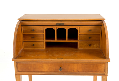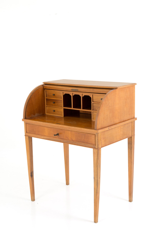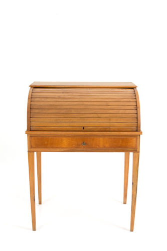 Wooden center desk with roller closure. 20th century. Defects. 103x80x56 cm approx. Scrittoio da centro in legno con chiusura a rullo. XX secolo. Difetti. 103x80x56 cm ca.