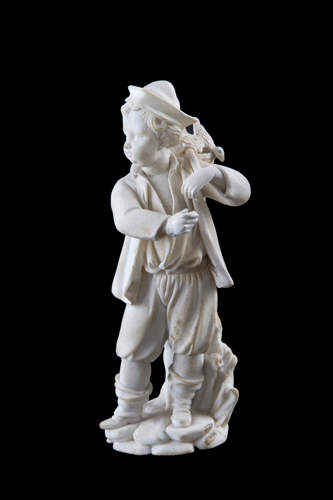 Bisque sculpture "BOY WITH BASKET AND BIRDS"