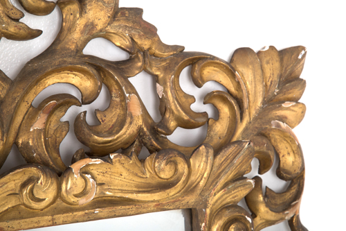 Carved, pierced and gilded wooden mirror. 19th century. Defects and shortcomings. 146x100 cm approx. Specchiera in legno intagliato, traforato e dorato. XIX secolo. Difetti e mancanze. 146x100 cm ca.