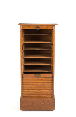 Shutter cabinet with pull-out shelves inside. England. 20th century. Defects. 115x50x43 cm approx. Mobiletto a serranda con ripiani estraibili all'interno. Inghilterra. XX secolo. Difetti. 115x50x43 cm ca.