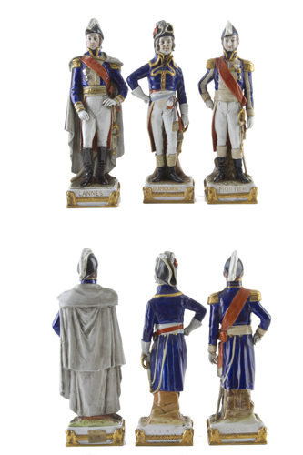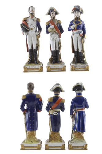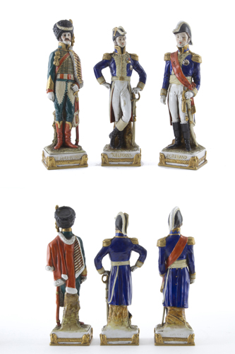 Twelve polychrome porcelain sculptures depicting "SOLDIERS". CAPODIMONTE manufacture. Marked on the bottom. Max. height approx. 24 cm. Dodici statuette in porcellana policroma raffiguranti "SOLDATI". Manifattura CAPODIMONTE. Marcati sul fondo. Alt. max. 24 cm ca.