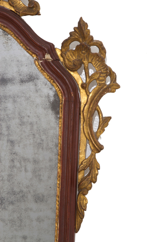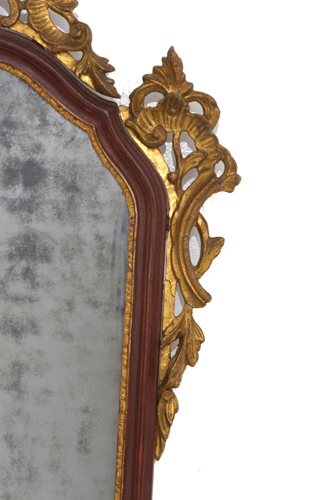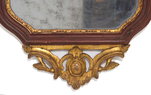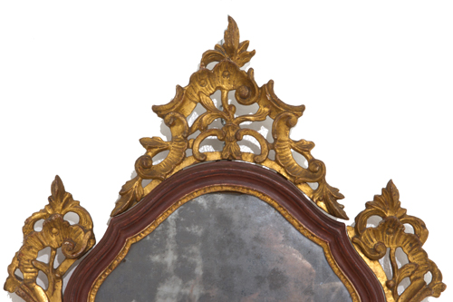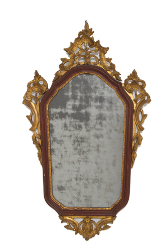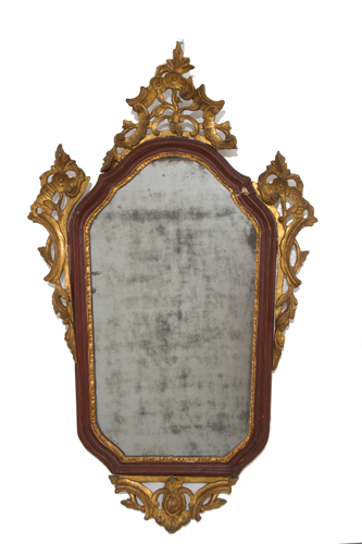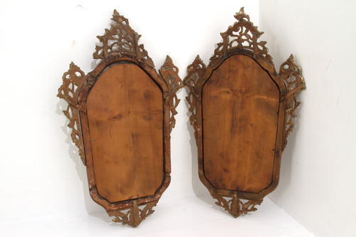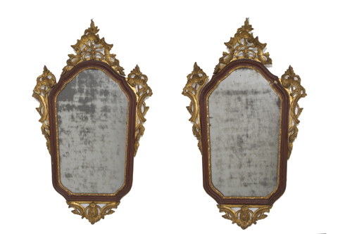 Pair of lacquered, carved and gilded wooden mirrors. Venice. 19th century. Minor defects. 72x44 cm approx. Coppia di specchiere in legno laccato, intagliato e dorato. Venezia. XIX secolo. Lievi difetti. 72x44 cm ca.