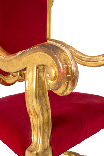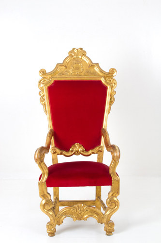 Throne in carved and gilded wood with seat and back in red velvet. 19th century. 148x67x66 cm approx. Trono in legno intagliato e dorato con sedile e schienale in velluto rosso. XIX secolo. 148x67x66 cm ca.