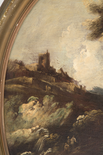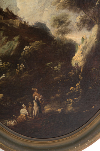 GENOESE MASTER OF THE 18TH CENTURY. Oil painting on canvas depicting "WOODLAND LANDSCAPE WITH CHARACTERS". Framed. Already relined and re-stretched.