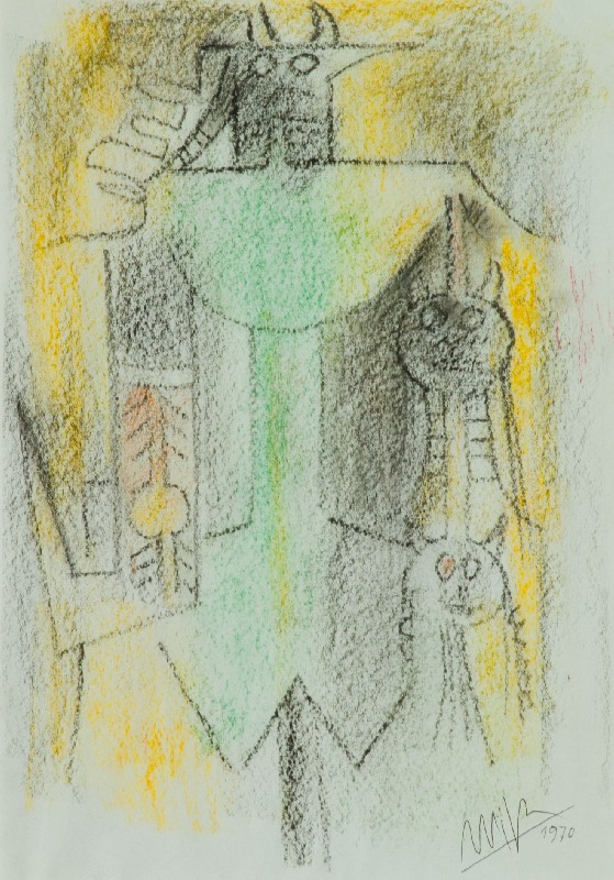 Wilfred Lam (Sagua la Grande 1902 - Parigi 1982) SENZA TITOLO, 1970 Pastelli policromi su carta, cm. 32x22 Firma e data in basso a destra. Sul verso: timbro "Nice Art's Gallery". Autentica dell'Artista su foto.