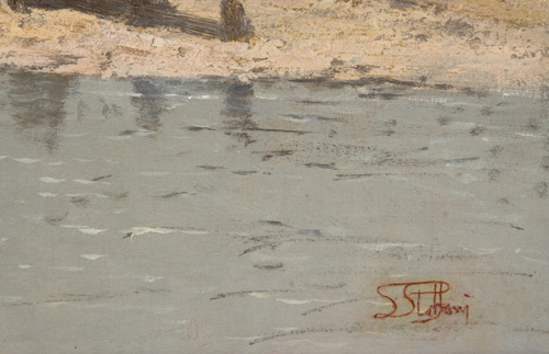 LUIGI STEFFANI (San Giovanni Bianco 1827-Milano 1898). Oil painting on canvas depicting "NORDIC SEA". Signed lower right. Framed. 30.5x52 cm approx. LUIGI STEFFANI (San Giovanni Bianco 1827-Milano 1898). Dipinto olio su tela raffigurante "MARINA NORDICA". Firmato in basso a destra. In cornice. 30,5x52 cm ca.