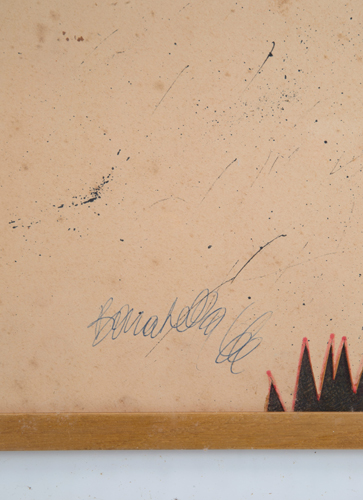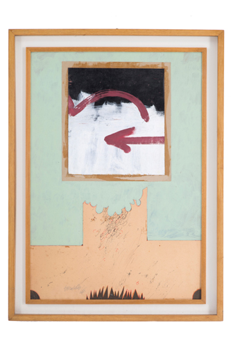 PAOLO BARATELLA (Bologna 1935). Mixed media on cardboard "UNTITLED". Signed and dated '66 lower left. Framed. With certificate of authenticity from the Vasco Art Gallery, Alassio. 100x70 cm approx. PAOLO BARATELLA (Bologna 1935). Tecnica mista su cartoncino "SENZA TITOLO". Firmata e datata '66 in basso a sinistra. In cornice. Con certificato di autenticità della Galleria d'Arte Vasco, Alassio. 100x70 cm ca.