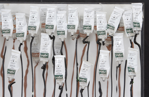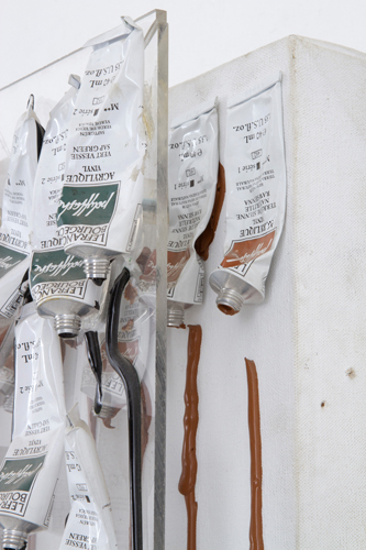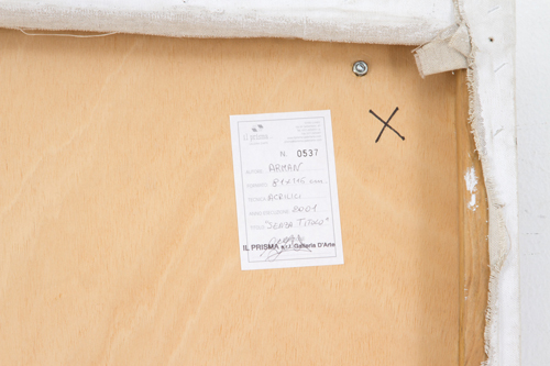 ARMAND PIERRE FERNANDEZ ARMAN (Nizza 1928-New York 2005). Acrylic and paint tubes on canvas and perspex "UNTITLED". Signed on the bottom. 2001. With the Foundation's authentication. Defects. 81x116x12 cm approx. ARMAND PIERRE FERNANDEZ ARMAN (Nizza 1928-New York 2005). Acrilico e tubetti di colore su tela e perspex "SENZA TITOLO". Firmato sul fondo. 2001. Con autentica della fondazione. Difetti. 81x116x12 cm ca.