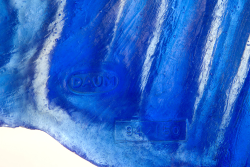 26x50x9 cm approx. PAOLO SANTINI (Firenze 1929-Parigi 2020). Scultura in pasta di vetro blu cobalto intitolata "ECLATEMENT". Firmata sul retro. Esemplare 94/150. Manifattura DAUM. Con certificato di autenticità.