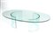 Oval glass coffee table with crescent legs. 1990s. Defects. 35x130x70 cm approx. Tavolino da salotto ovale in vetro con gambe a mezzaluna. Anni '90. Difetti. 35x130x70 cm ca.