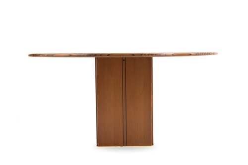 AFRA e TOBIA SCARPA. Africa table in various woods. Artona series. MAXALTO production. With brand and label inside the base. 1970s. Signs of wear and tear over time. 70x145.5 cm approx. AFRA e TOBIA SCARPA. Tavolo Africa serie Artona in legni vari. Produzione MAXALTO. Con marchio ed etichetta all'interno della base. Anni ’70. Segni di usura del tempo. 70x145,5 cm ca.