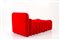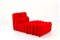 JOE COLOMBO (Milano 1930-1971). Poltrona con poggiapiedi Additional System in alluminio e tessuto rosso. Produzione SORMANI. Anni '70. Segni di usura del tempo.