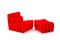 JOE COLOMBO (Milano 1930-1971). Armchair with footrest Additional System in aluminum and red fabric. SORMANI production. 1970s. Signs of wear and tear.