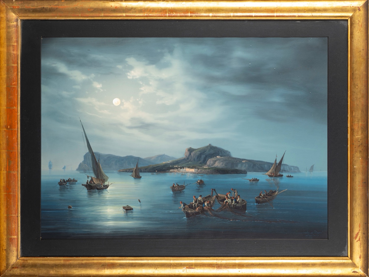 Gioacchino La Pira (attivo tra 1839 e 1875) - Notturno a Capri