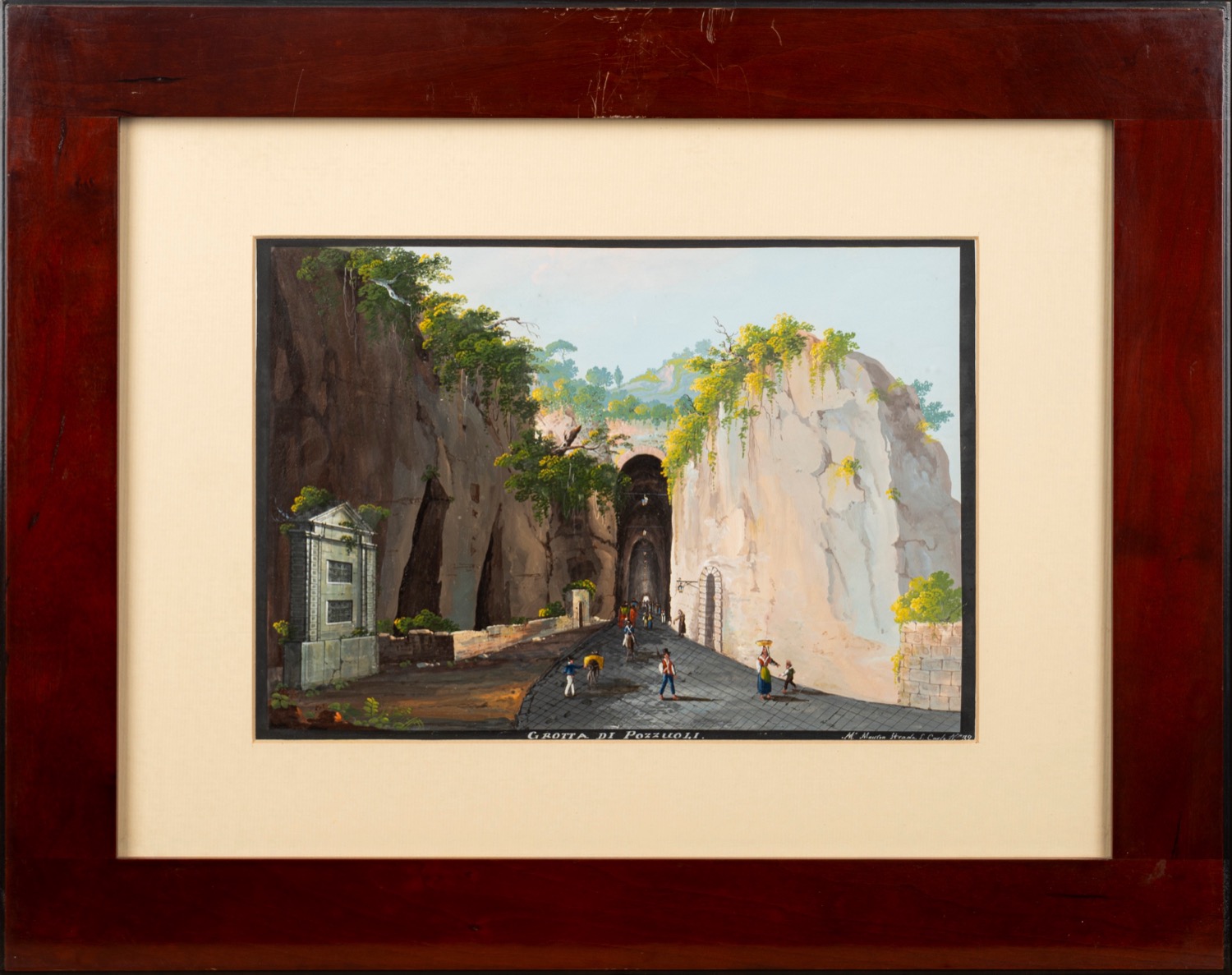 firmato in basso a destra: M. Mauton Strada S. Carlo N°. 32 e intitolato in basso al centro: GROTTA DI POZZUOLI.