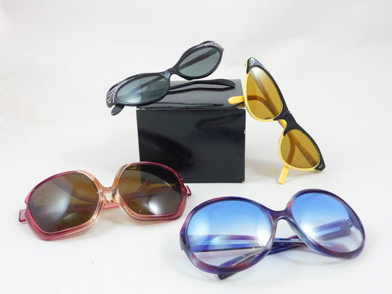 DIECI PAIA DI OCCHIALI DA SOLE - TEN SUNSGLASSES di varie forme e tipologie tra i quali un paio, Yves Saint Laurent arancio con iniziale, difetti