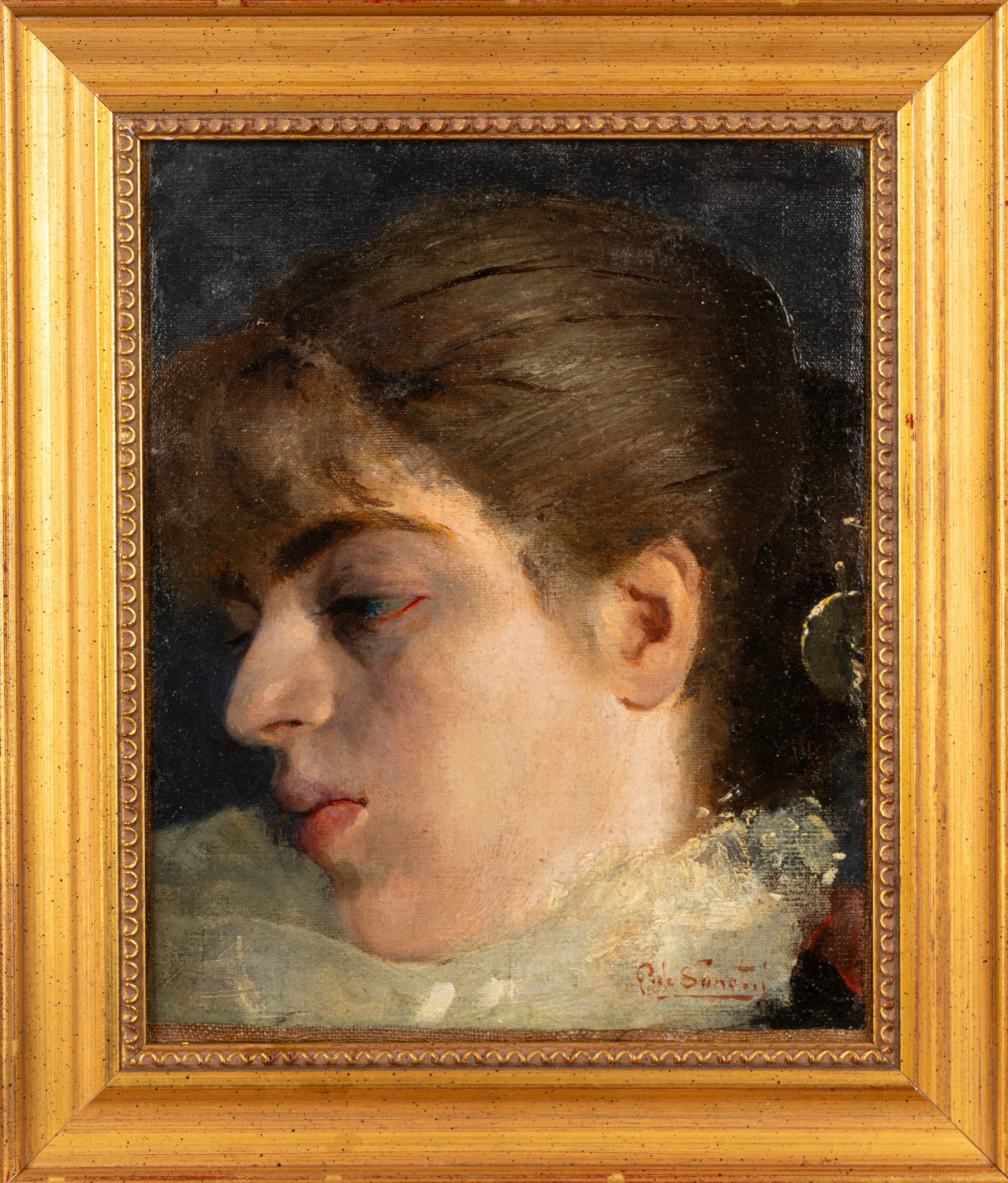 Giuseppe De Sanctis (Napoli 1858-1924) - Ritratto di giovane donna di profilo