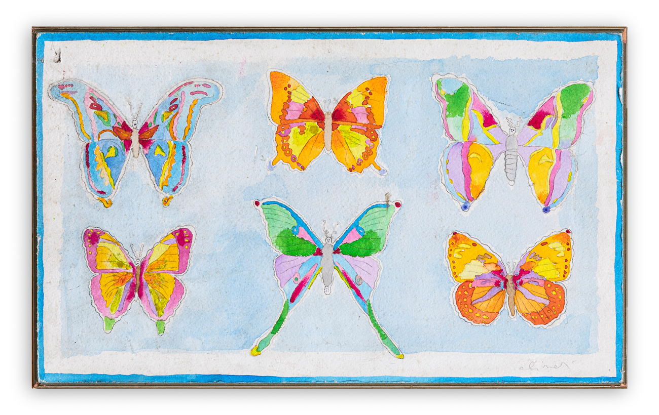 Il certificato di archiviazione applicato al retro specifica che l'opera è una delle prime sulle farfalle 'fascino di colori esili che oscillano nel vuoto'
