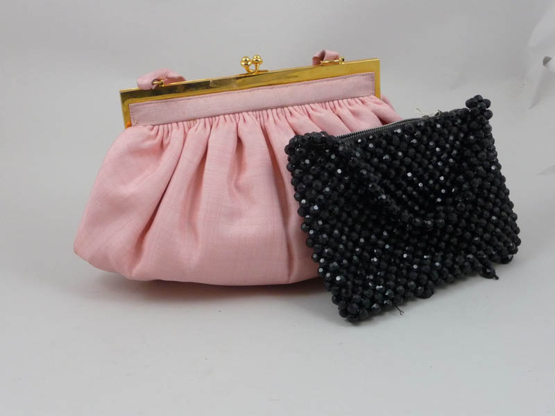 CINQUE BORSETTE DA SERA - FIVE CLUNTCH di cui una in chiffon rosa con interno stampato e piccolo portamonete correlato, lievi difetti