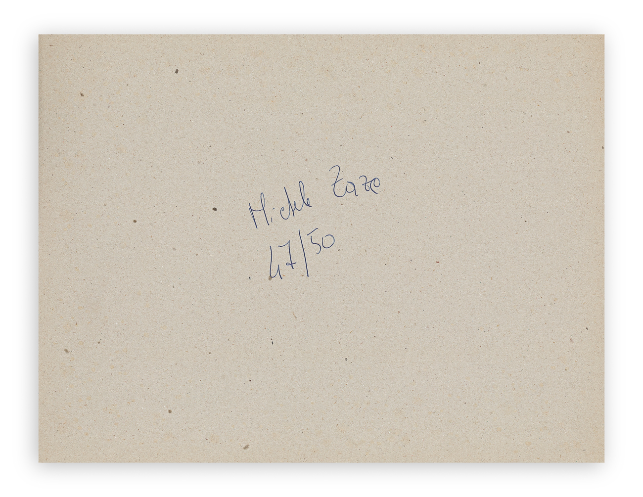 Firma e numerazione (Esemplare 47/50) a biro al retro del primo elemento