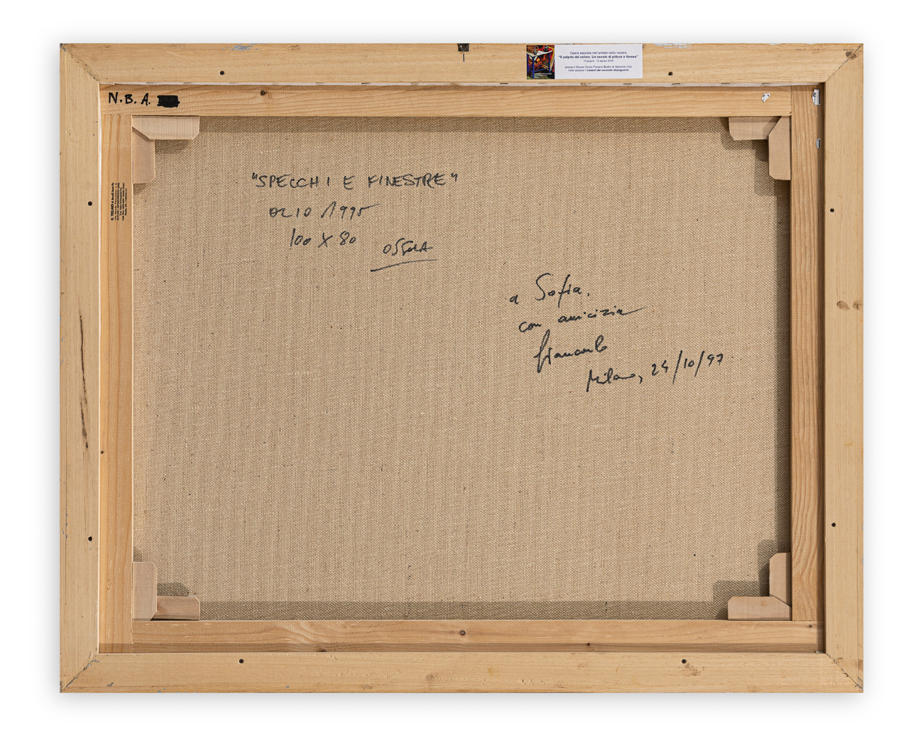 Etichetta dell'esposizione 'Il palpito del colore. Un secolo di pittura a Varese' al retro