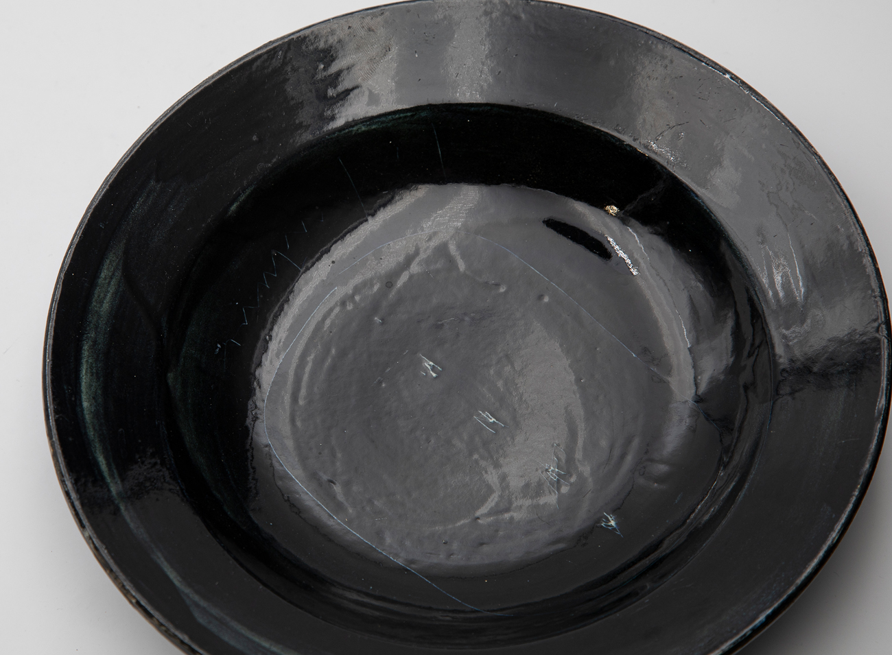 Terracotta ingobbiata, vetrina e graffiti: nero