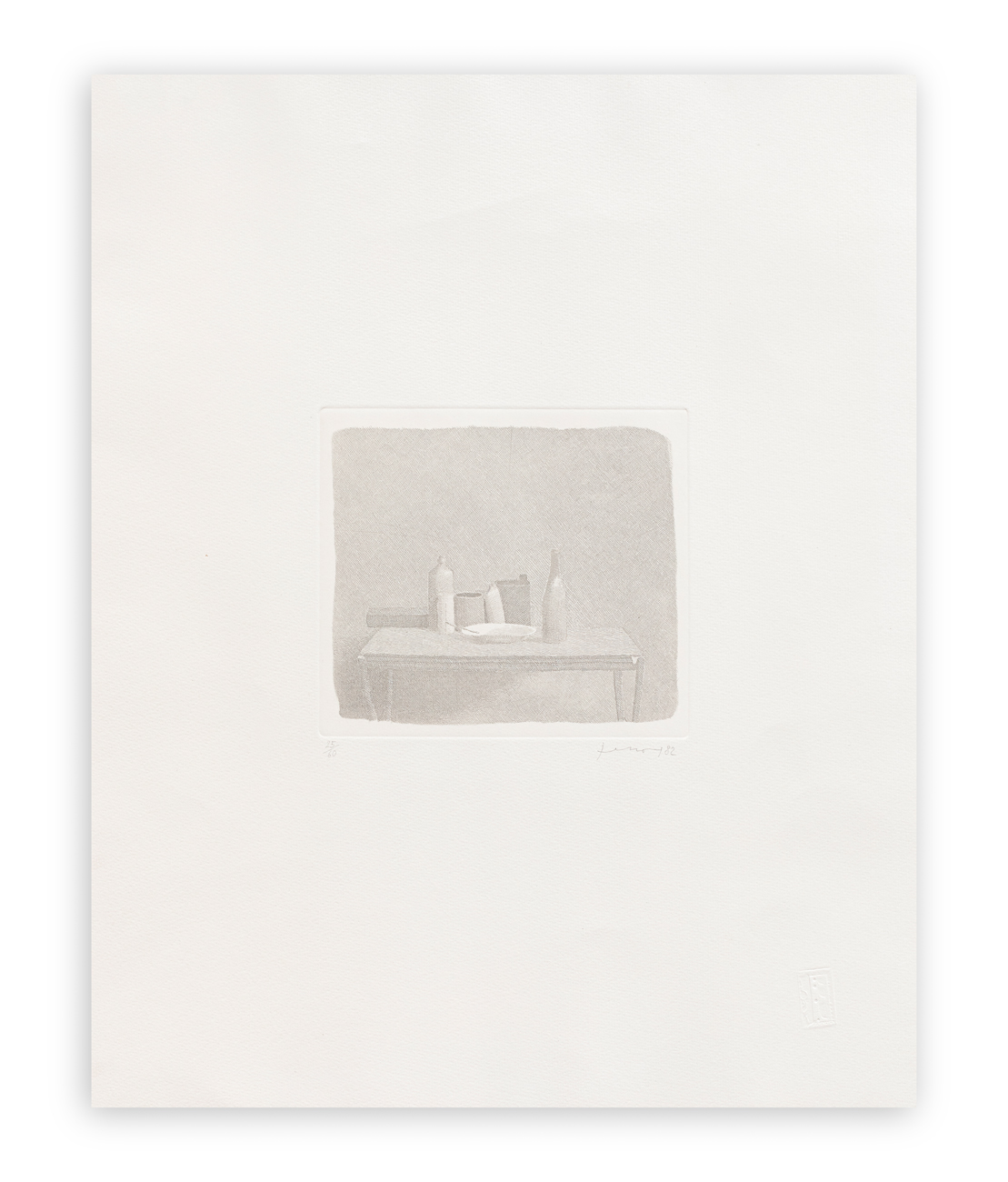 Oggetti sul tavolino (Omaggio a Morandi), 1982