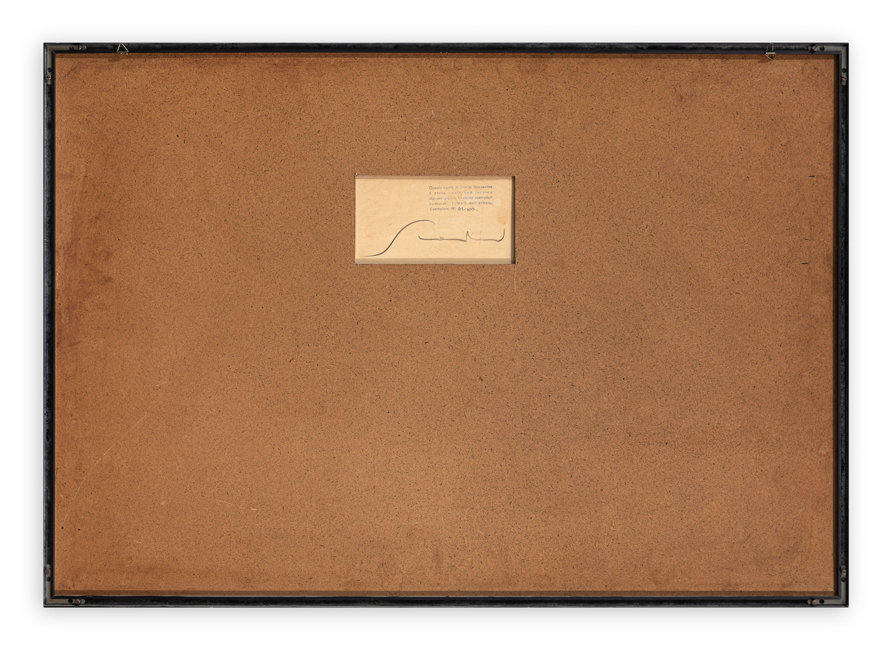 Firma e numerazione (Esemplare 61/100) a matita al fronte