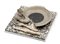 Multiplo composto da 4 elementi in ceramica, un base di legno e teca di plexiglass