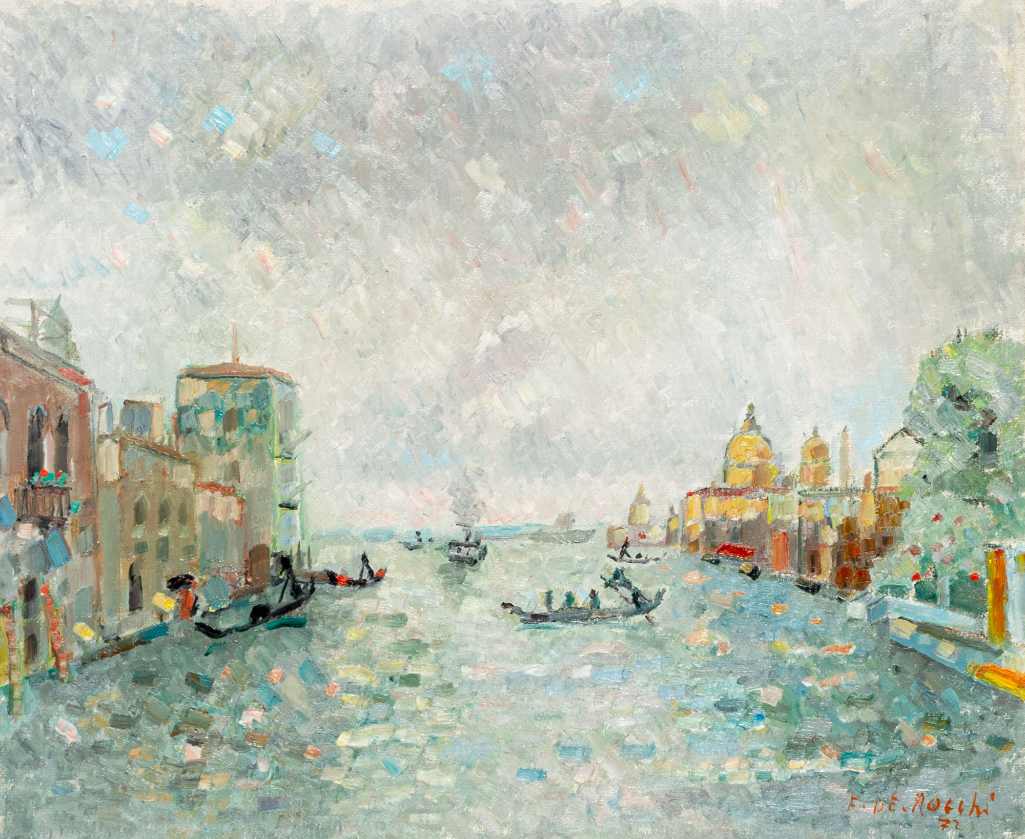 FRANCESCO DE ROCCHI(1902 - 1978)Canal Grande - Venezia1972Olio su tela50 x 60 cmFirmato in basso a destraFirma, data e titolo al retroPROVENIENZA:Collezione privata, Biella