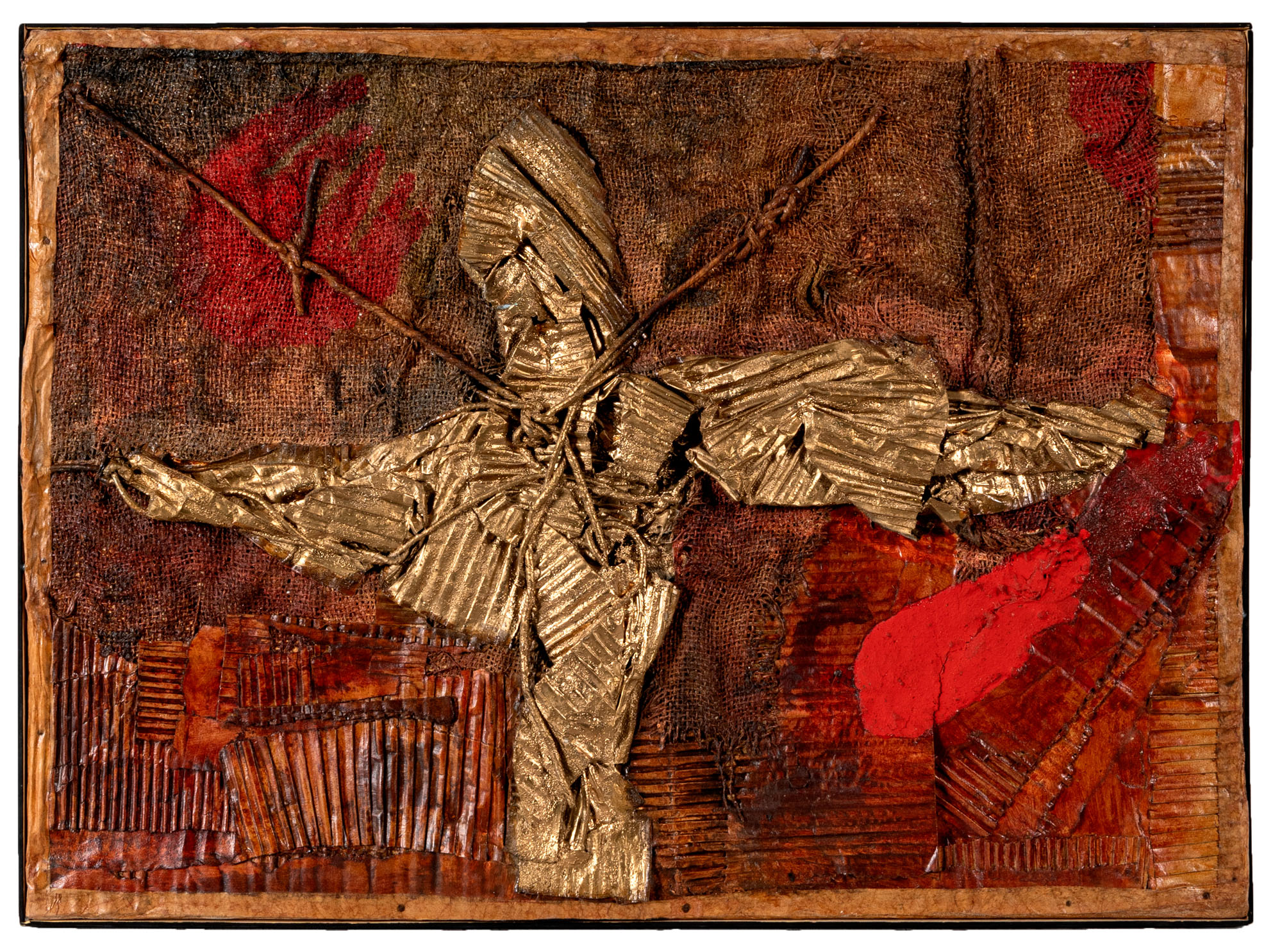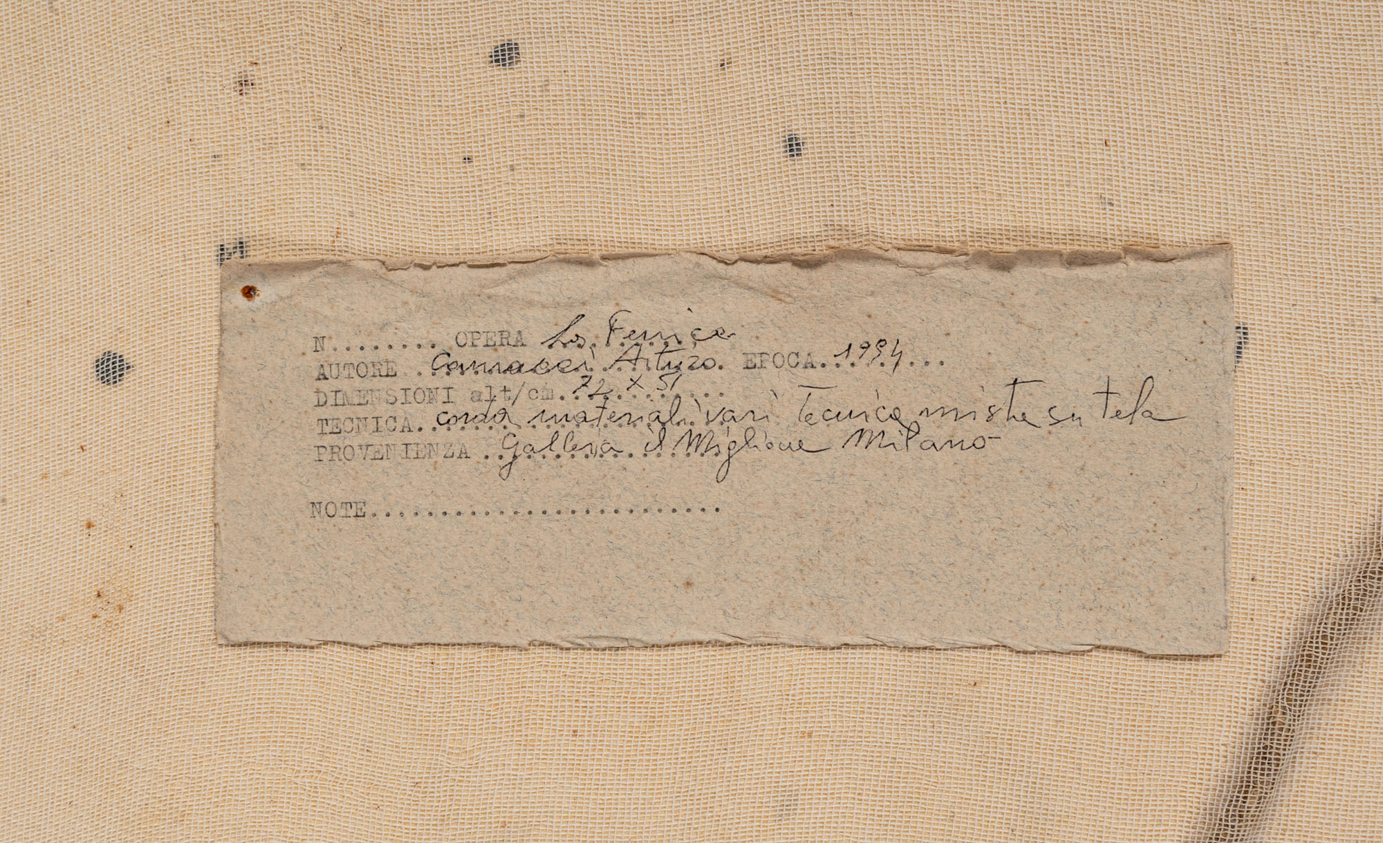 ARTURO CARMASSI(1925 - 2015)La fenice1994Tecnica mista con applicazioni su tela52 x 70,5 cmTitolo al retroPROVENIENZA:Collezione privata, Pavia
