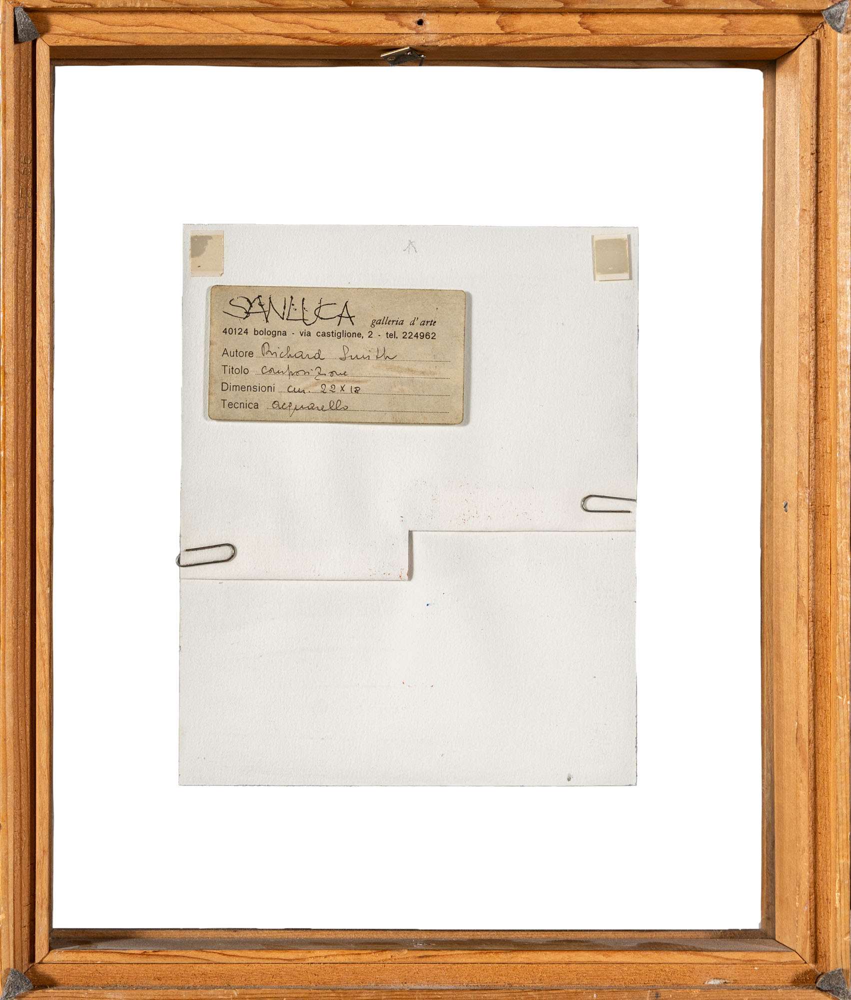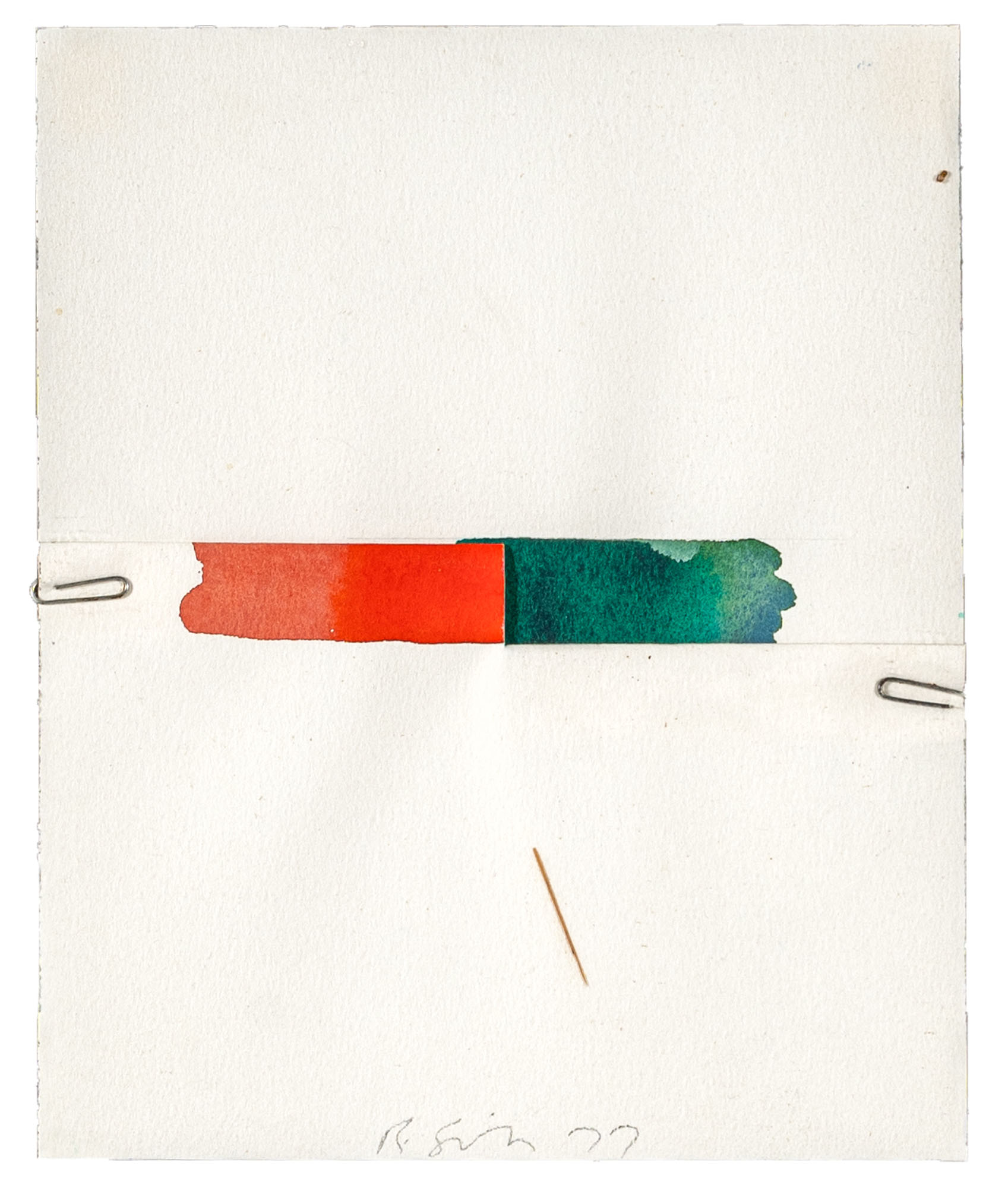RICHARD SMITH(1931 - 2016)Composizione1977Matita e acquerello su carta con applicazione di graffette22 x 18 cmFirmata e datata in basso al centroPROVENIENZA:Galleria Sanluca, Bologna (etichetta al retro)Collezione privata, Milano