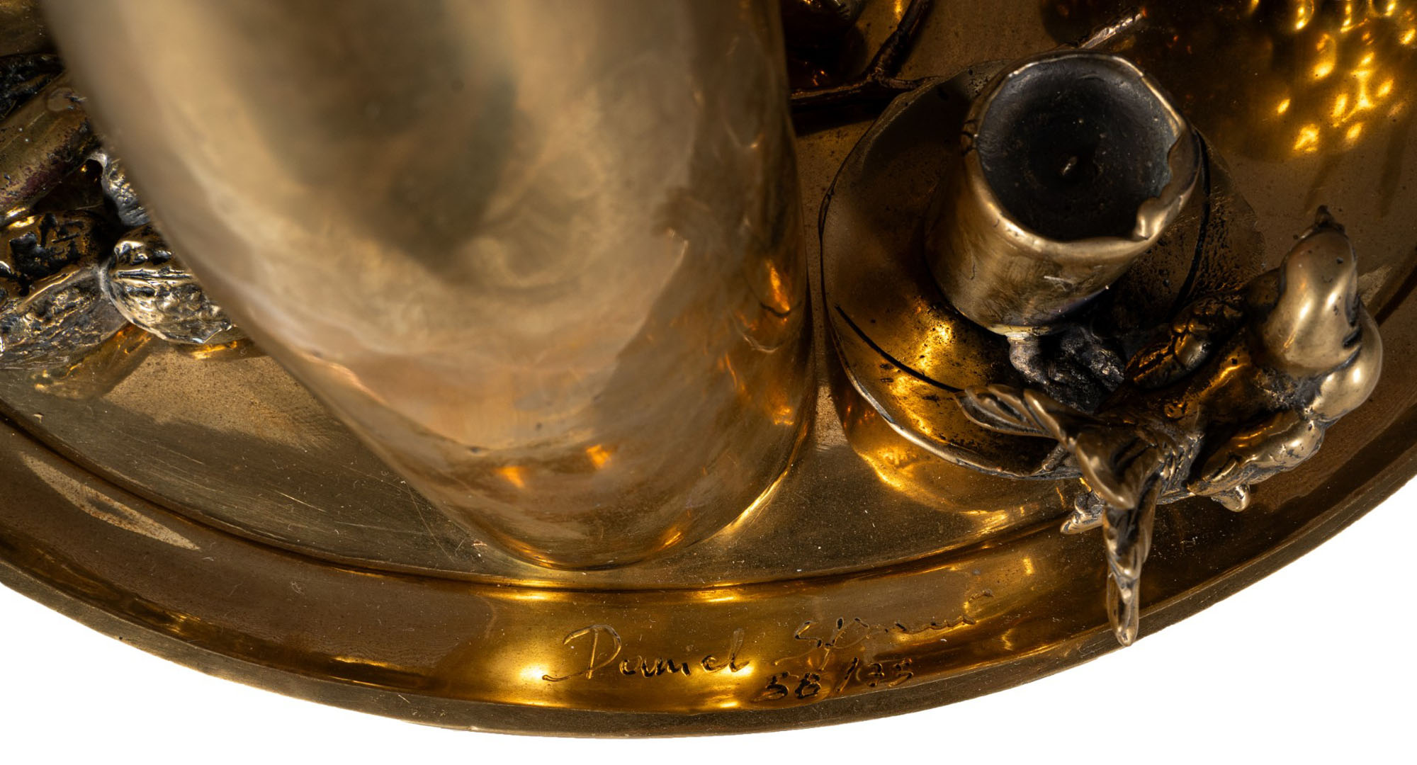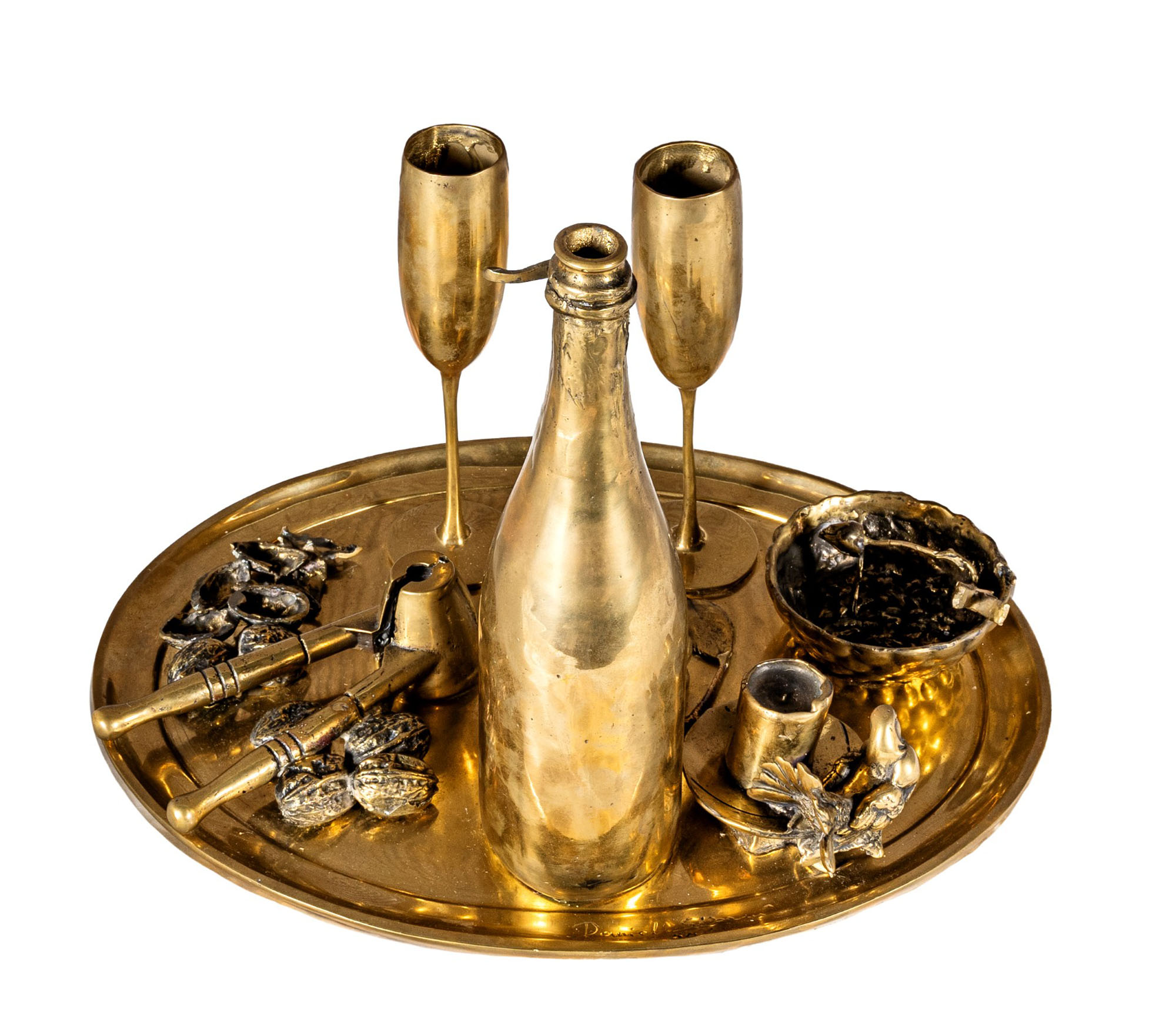 DANIEL SPOERRI(1930 - 2024)L'heure bleue1991Scultura in bronzo fusa a cera persa, es. 58/75 su una tiratura complessiva di 75 esemplari in numeri arabi e 30 esemplari in numeri romani43 x 34 x 30 cm circaFirma e numerazione incise sul piattoPROVENIENZA:Collezione privata, Pavia