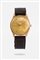 Quadrante champagne con indici geometrici applicati, datario al 3 ed indicazione centrale dei secondi continui.