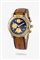 Cassa in acciaio con fondello a vite e lunetta girevole in oro. Quadrante blu con indici geometrici luminescenti, datario al 3, secondi continui al 9, 12 ore al 6 e 24 al 12.