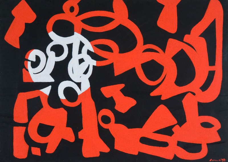 Carla Accardi (Trapani 1924) CERCHIO BIANCO, 1997 Vinilico su tela, cm. 50x70 Firma e data in basso a destra. Sul pianetto: firma, data, titolo e Archivio n° 627A; Timbro ed etichetta di Garanzia "Galleria d'Arte Vannucci", Pistoia. Autentica dello Studio Accardi su foto con Archivio n° 627A e timbro con Certificato n° 88/97.