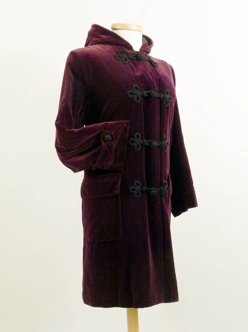 MANTELLA IN VELLUTO BORDEAUX - BORDEAUX VELVET CLOAT Saint Laurent chiusura ad alamari neri, tasche, cappuccio tg 36