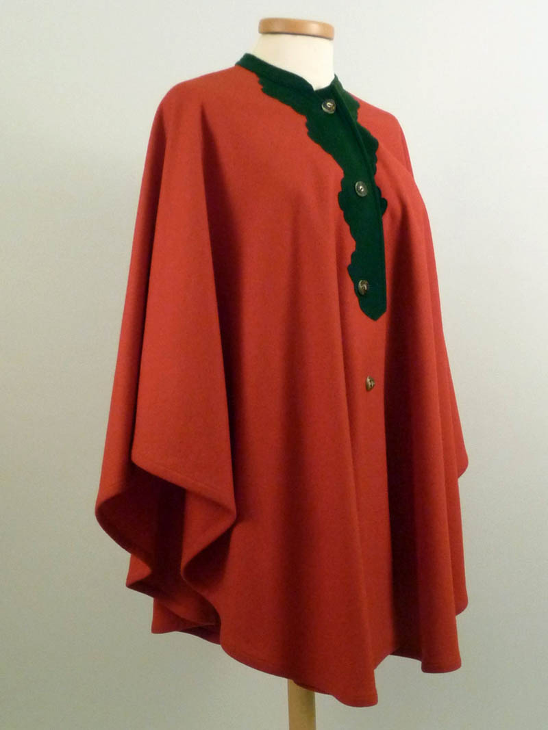MANTELLA TIROLESE IN LODEN ROSSO - RED TYROLEAN CAPE Original Lanz scollo bordato da loden verde, bottoni in corno tg L