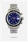 Quadrante limited edition blu soleil con datario al 3, 12 ore cronografiche al 6, secondi continui al 9 e 30 minuti cronografici al 12.