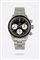 Cassa in acciaio con fondello a vite e lunetta tachimetrica in bakelite.
