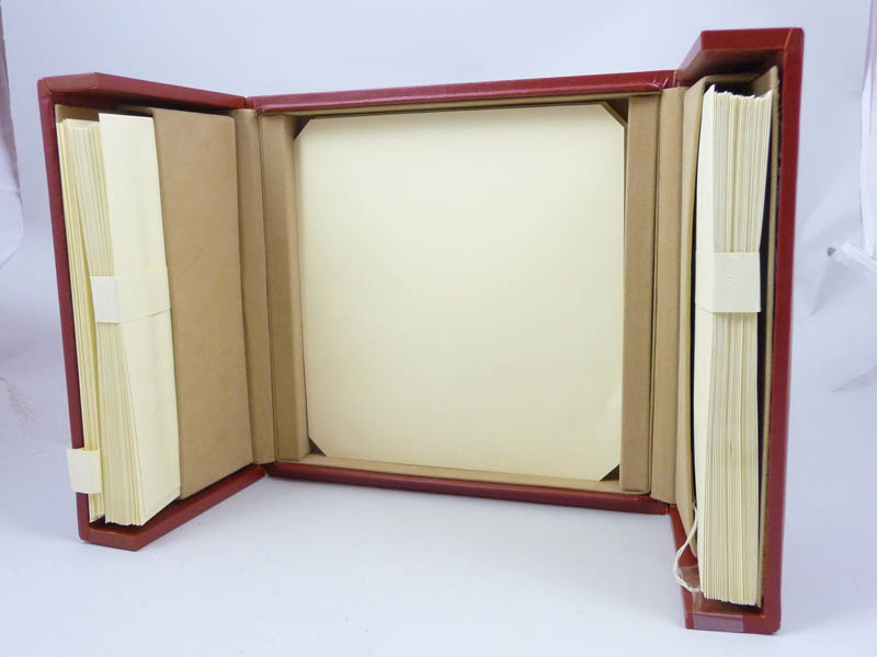DUE SCATOLE PER CORRISPONDENZA IN PELLE ROSSA - TWO WRITING PAPER BOXES Cartier complete di carta da lettere