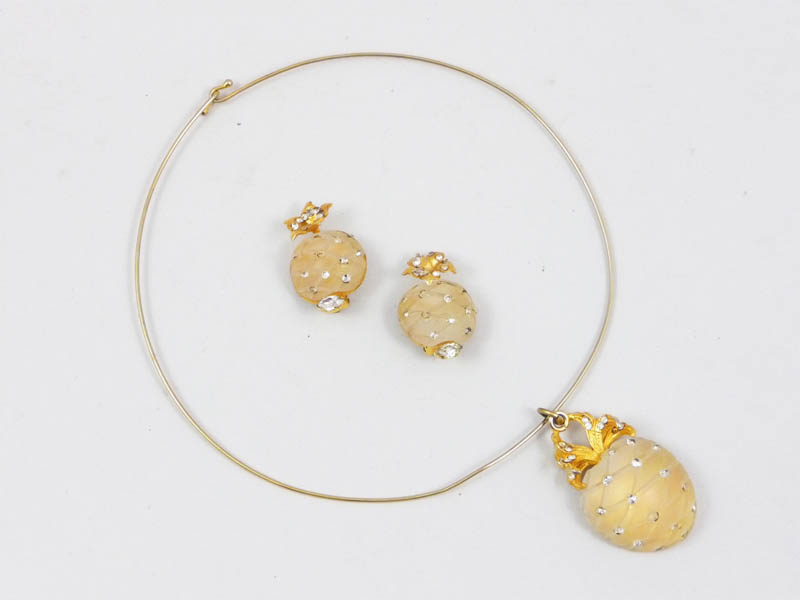 COLLANA BIJOUX CON PENDENTE E ORECCHINI IN METALLO DORATO E STRASS - BIJOUX NECKLACE WITH PENDANT AND EARRINGS Sonia Italy realizzati a forma di ananas (2)