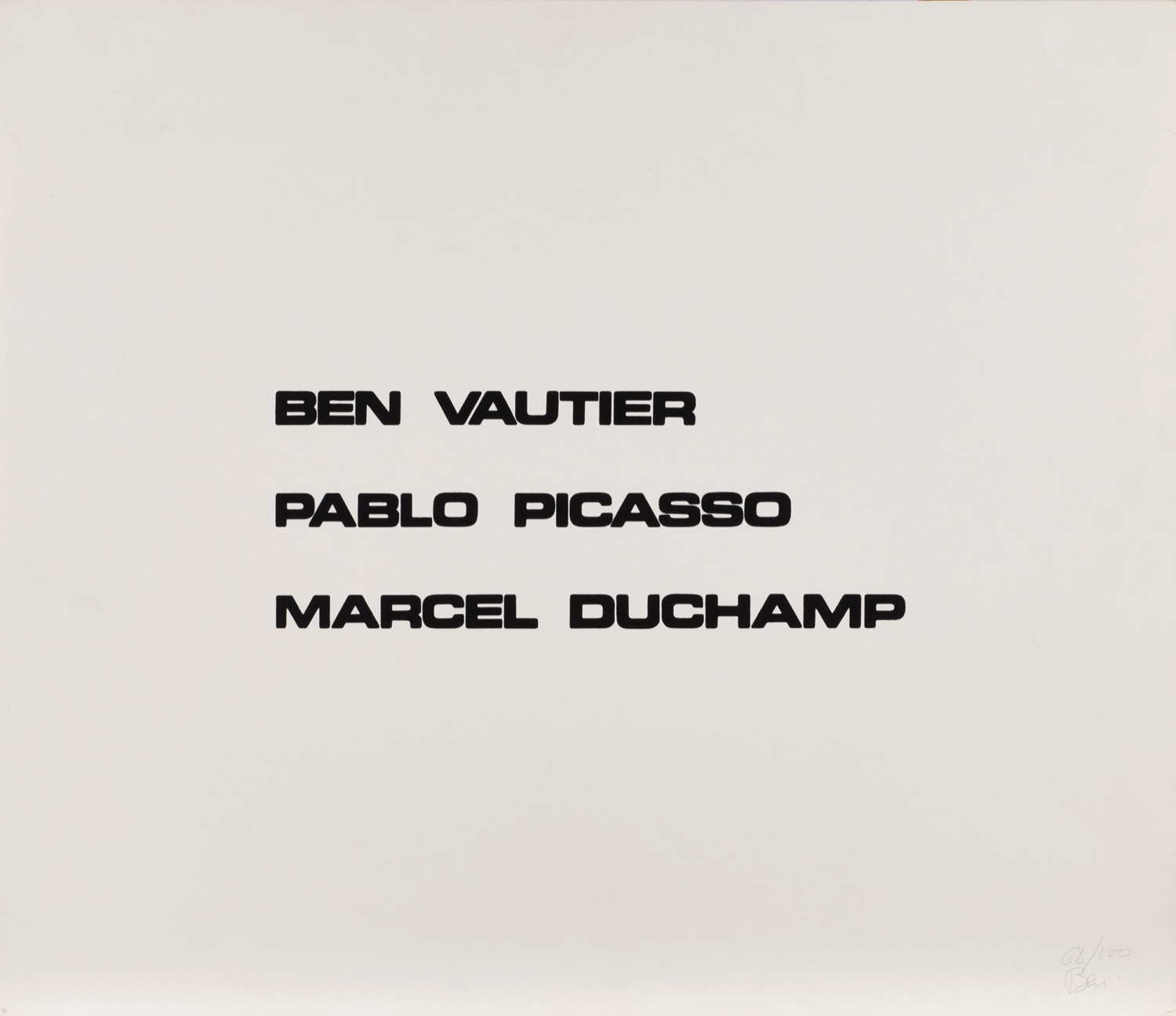 Ben Vautier (Napoli 1935-Nizza 2024) - Ben Vautier. Pablo Picasso. Marcel Duchamp, 1971