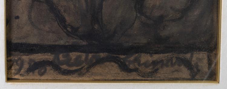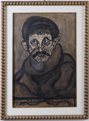 Pietro Ghizzardi (Viadana 1906 - Boretto 1986). Ritratto maschile, 1976. Cm. 68x46. In cornce cm. 82x63. Tecnica mista su cartoncino. Datato e firmato sul fronte in basso 1976 Pietro Ghizzardi.