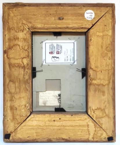 In cornice con fascia riccamente intagliata, dorata, con mascheroni posti ai centri e ricchi motivi fitomorfi lobati agli angoli.