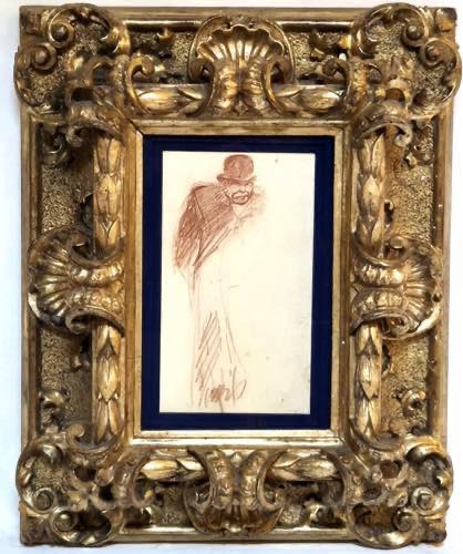 Lorenzo Viani (Viareggio, 1882 - Lido di Ostia, 1936). Figura, 1930 circa. Cm. 23x14. Disegno a sanguigna su carta. Firmato in basso al centro. Al retro presente etichetta con timbro della Galleria d'Arte Contemporanea Il Narciso, Roma e autentica della figlia Ornella in data 1979.