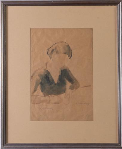 Gino Marzocchi (Molinella 1895 - Bologna 1981). La lettera. Cm. 35x23,5. In cornice 56,5x46,5. Acquarello su carta. Titolato in basso a sinistra La lettera. Firmato a matita in basso a destra Gino Marzocchi. Con cornice e vetro. Difetti al vetro angolo superiore.
